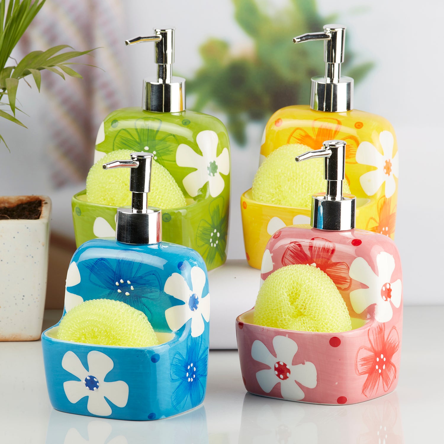 Add a splash of color and charm to your bathroom or kitchen with Kookee's vibrant ceramic soap dispensers. Designed with a perfect blend of practicality and elegance, these dispensers boast eye-catching colors and intricate patterns that elevate your space's aesthetic appeal. Made from high-quality ceramic, they are durable, easy to clean, and resistant to wear. The smooth pump mechanism ensures effortless dispensing, making them ideal for hand soaps, lotions, or dishwashing liquids. Whether you’re revamping your décor or adding a pop of style, these dispensers fit seamlessly into modern and traditional settings. Functional yet decorative, they make a thoughtful gift for housewarmings or special occasions. Bring home the perfect combination of beauty and utility with Kookee's ceramic soap dispensers.