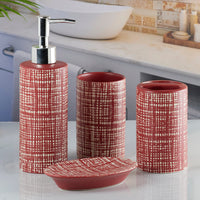 Ceramic Bathroom Set of 4 with Soap Dispenser, Red(5748)