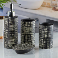 Bring style and convenience to your sink counter with this beautiful bathroom accessories set for home that stands out for its utility and aesthetic. The bathroom set 4 piece is easy to clean, chip-resistant and built to last through everyday use.