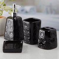 Bring style and convenience to your sink counter with this beautiful bathroom accessories set for home that stands out for its utility and aesthetic. The bathroom set 4 piece is easy to clean, chip-resistant and built to last through everyday use.