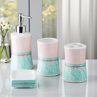 Bring style and convenience to your sink counter with this beautiful bathroom accessories set for home that stands out for its utility and aesthetic. The bathroom set 4 piece is easy to clean, chip-resistant and built to last through everyday use.