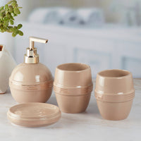 Bring style and convenience to your sink counter with this beautiful bathroom accessories set for home that stands out for its utility and aesthetic. The bathroom set 4 piece is easy to clean, chip-resistant and built to last through everyday use.