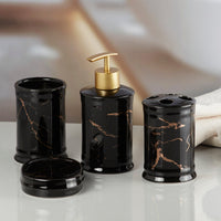 Bring style and convenience to your sink counter with this beautiful bathroom accessories set for home that stands out for its utility and aesthetic. The bathroom set 4 piece is easy to clean, chip-resistant and built to last through everyday use.