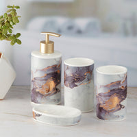 Bring style and convenience to your sink counter with this beautiful bathroom accessories set for home that stands out for its utility and aesthetic. The bathroom set 4 piece is easy to clean, chip-resistant and built to last through everyday use.