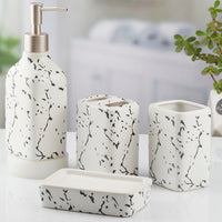 Bring style and convenience to your sink counter with this beautiful bathroom accessories set for home that stands out for its utility and aesthetic. The bathroom set 4 piece is easy to clean, chip-resistant and built to last through everyday use.
