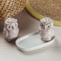 Ceramic Salt and Pepper Set with tray, Owl Design, Pink
