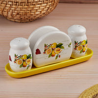 Crafted from premium quality ceramic, this beautiful ceramic salt and pepper shaker set comes with a matching tray, making it easy to pass around and organize. Whether you use it on your breakfast counter or formal dinner setup, this dining table salt and pepper set is sure to complement your crockery and add charm to your presentation.