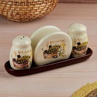 Ceramic Salt and Pepper Shakers Set with tray for Dining Table (10714)