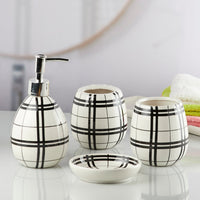 Bring style and convenience to your sink counter with this beautiful bathroom accessories set for home that stands out for its utility and aesthetic. The bathroom set 4 piece is easy to clean, chip-resistant and built to last through everyday use.