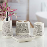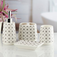 Bring style and convenience to your sink counter with this beautiful bathroom accessories set for home that stands out for its utility and aesthetic. The bathroom set 4 piece is easy to clean, chip-resistant and built to last through everyday use.
