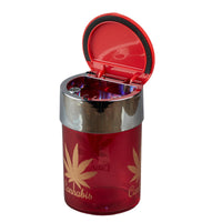 Glass Car Ashtray with LIght, Round, Red Cannabis (Diemeter: 6.5cm)