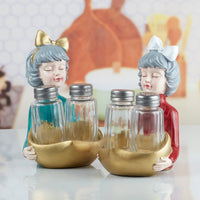 Polyresin Modern Girl Salt and Pepper Shakers Set holder (10356)