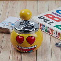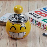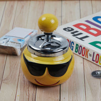 Smokeless Ceramic Push Down Ashtray for Cigarettes, Round, Yellow Smiley (11380)